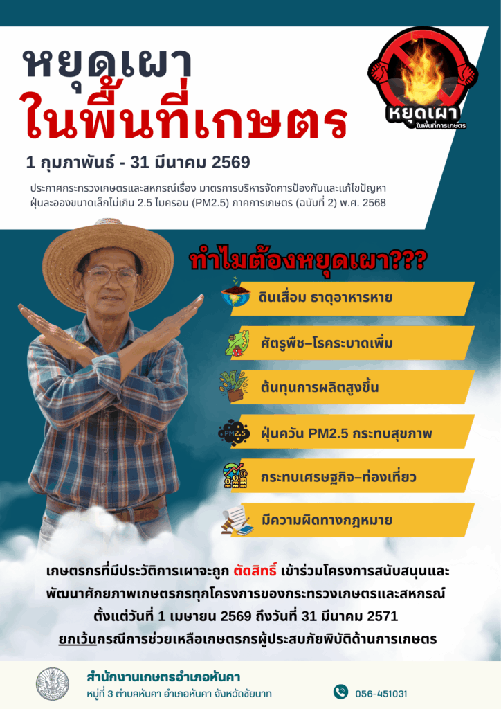 ประกาศกระทรวงเกษตรและสหกรณ์เรื่อง มาตรการบริหารจัดการป้องกันและแก้ไขปัญหาฝุ่นละอองขนาดเล็ก ไม่เกิน 2.5 ไมครอน (PM2.5) ภาคการเกษตร