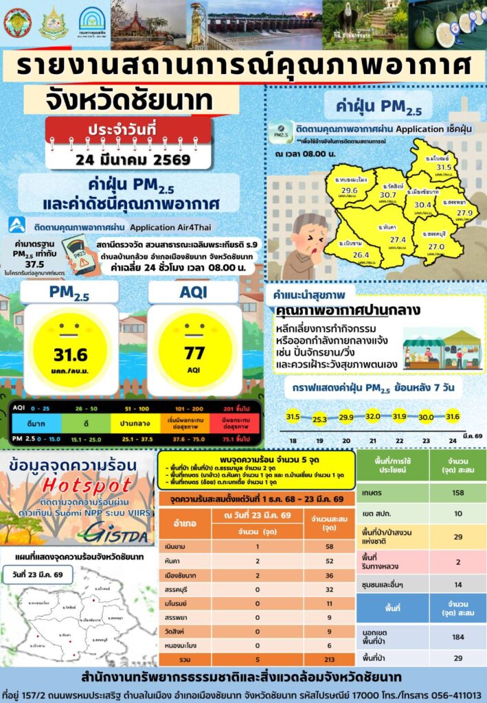 📣📣 ประกาศจังหวัดชัยนาท เรื่อง งดเว้นการเผาวัสดุทางการเกษตร วัชพืช ขยะมูลฝอย และการเผาในที่โล่งอื่นๆ ทุกกรณี ในพื้นที่จังหวัดชัยนาท ปี พ.ศ. 2568 – 2569 เพื่อเตรียมความพร้อมในการป้องกันและแก้ไขปัญหาไฟป่าหมอกควัน และฝุ่นละอองขนาดเล็ก (PM2.5) ในพื้นที่จังหวัดชัยนาท โดยขอให้หน่วยงาน และประชาชนถือปฏิบัติอย่างเคร่งครัด