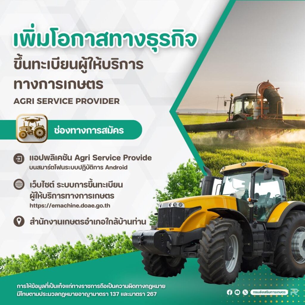 สำนักงานเกษตรอำเภอสรรคบุรี ขอเชิญชวนผู้ประกอบการ หรือเกษตรกร ที่มีเครื่องจักรกลการเกษตร หรือมีการให้บริการทางการเกษตร ขึ้นทะเบียนผู้ให้บริการทางการเกษตร (ASP)