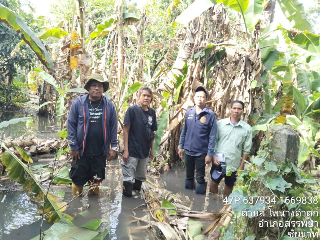 วันที่ 25 พฤศจิกายน 2568 นางสาววิษากรานต์ ตุ่นทอง เกษตรอำเภอสรรพยา มอบหมายให้นายชัยวุฒิ แย้มวัด นักวิชาการส่งเสริมการเกษตรชำนาญการ ร่วมกับคณะอนุกรรมการให้ความช่วยเหลือผู้ประสบภัยพิบัติระดับหมู่บ้าน (ด้านพืช) ลงพื้นที่ตรวจสอบความเสียหาย เพื่อประกอบการให้ความช่วยเหลือเกษตรกรผู้ประสบภัยพิบัติด้านพืชในพื้นที่ตำบลโพนางดำตก อำเภอสรรพยา จังหวัดชัยนาท