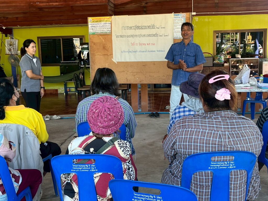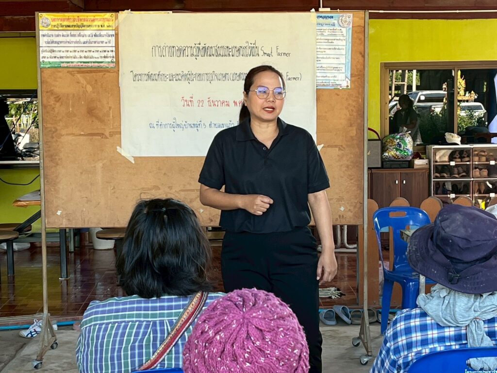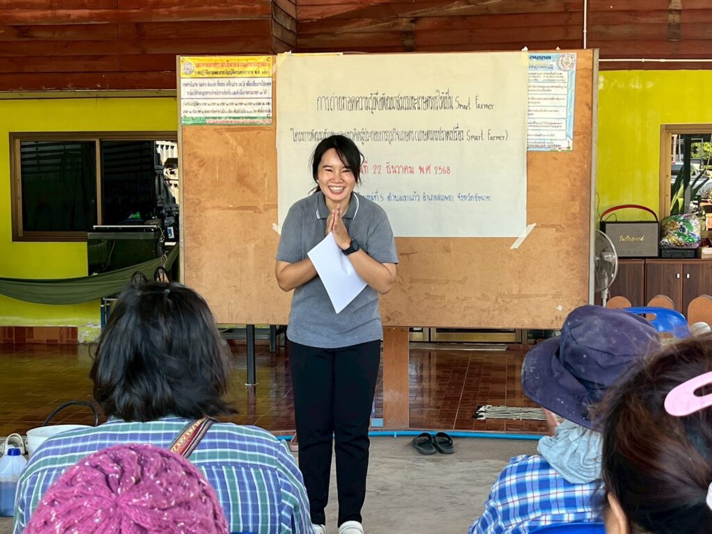 วันที่ 22 ธันวาคม 2568 นางสาววิษากรานต์ ตุ่นทอง เกษตรอำเภอสรรพยา พร้อมด้วยนางสาวจุฑามาศ ดอกชะเอม นักวิชาการส่งเสริมการเกษตรชำนาญการ จัดอบรมถ่ายทอดความรู้เพื่อพัฒนาสมรรถนะเกษตรกรให้เป็น Smart Farmer ภายใต้โครงการพัฒนาทักษะและแนวคิดผู้ประกอบการธุรกิจ (เกษตรกรปราดเปรื่อง Smart Farmer) โดยมีกิจกรรมการฝึกวิเคราะห์ข้อมูลในการดำเนินกิจกรรมทางการเกษตรของเกษตรกร พร้อมนำข้อมูลมาฝึกอบรมการวางแผนการผลิตรายบุคคล กิจกรรมการถ่ายทอดความรู้จากหลักสูตรความต้องการของเกษตรกร กิจกรรมปรับแนวคิดการพัฒนาตนเอง โดยสร้างการตระหนักรู้ในการพัฒนา 5 ทักษะสำคัญของเกษตรกรไทยในปัจจุบัน และกิจกรรมสร้างเครือข่ายการเรียนรู้ร่วมกันของเกษตร ณ ที่ทำการผู้ใหญ่บ้าน หมู่ที่ 5 ตำบลเขาแก้ว อำเภอสรรพยา จังหวัดชัยนาท