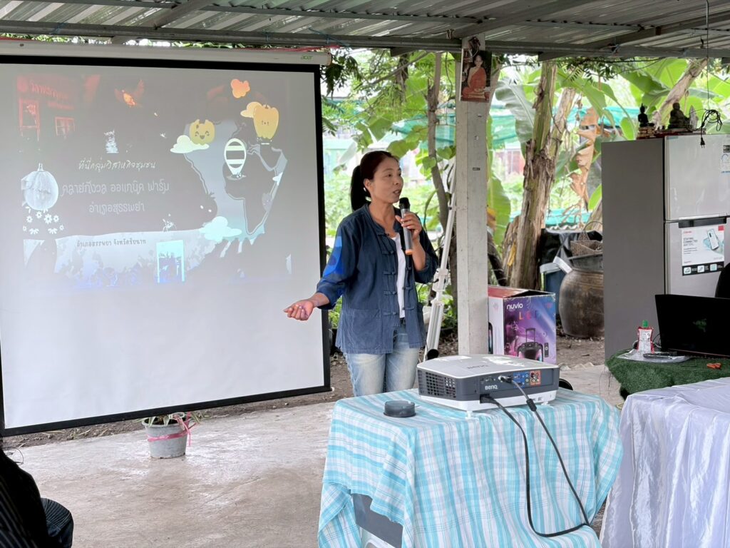 ในการนี้ คณะทำงานได้ลงพื้นที่ เพื่อตรวจเยี่ยมผลการดำเนินงาน รับฟังการนำเสนอแนวทางการบริหารจัดการกลุ่ม กระบวนการผลิต ตลอดจนผลสำเร็จในการพัฒนาอาชีพและสร้างรายได้ให้กับสมาชิกในชุมชน ณ วิสาหกิจชุมชนคลายกังวล ออแกนิคฟาร์ม หมู่ที่ 7 ตำบลตลุก อำเภอสรรพยา จังหวัดชัยนาท