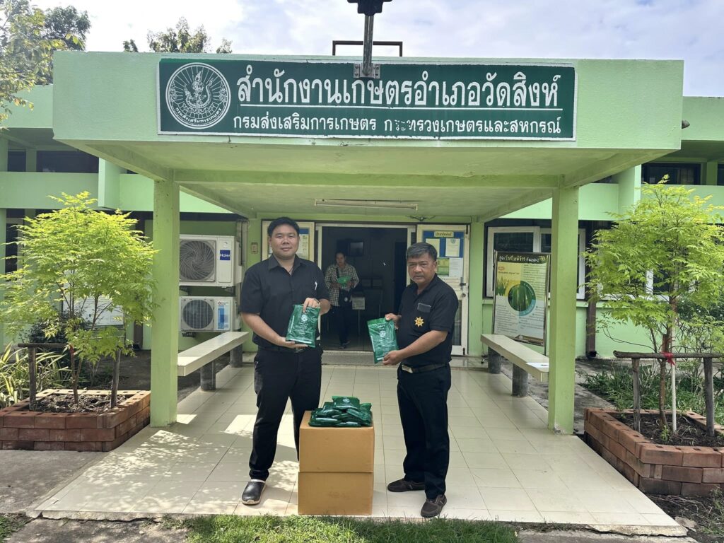 วันที่ 28 ตุลาคม 2568 นายชลิต พิชยภิญโญ นักวิชาการส่งเสริมการเกษตรชำนาญการ สำนักงานเกษตรอำเภอวัดสิงห์ สนับสนุนปุ๋ยชีวภาพพีจีพีอาร์-ทู ให้กับกลุ่มแปลงใหญ่ข้าวตำบลบ่อแร่ ที่ได้รับการจัดสรร จากศูนย์วิจัยข้าวชัยนาท โดยสนับสนุนให้สมาชิกแปลงใหญ่ข้าวตำบลบ่อแร่ ที่เข้าร่วมการตรวจรับรองมาตรฐาน GAP แบบกลุ่ม จำนวน 9 ราย พื้นที่ 45 ไร่ ซึ่งปุ๋ยอินทรีย์ PGPR -2 สำหรับข้าว (กรมวิชาการเกษตร) คือ ปุ๋ยชีวภาพ ที่ประกอบด้วยแบคทีเรียที่เป็นประโยชน์ต่อพืช ซึ่งอาศัยอยู่บริเวณรอบราก ช่วยส่งเสริมการเจริญเติบโตของพืชโดยการ ตรึงไนโตรเจน จากอากาศ, ละลายธาตุอาหาร ที่ถูกตรึงในดิน เช่น ฟอสฟอรัสและโพแทสเซียม, สร้างฮอร์โมนพืช และช่วยเพิ่มประสิทธิภาพในการดูดซึมสารอาหาร ทำให้พืชเจริญเติบโตได้ดีขึ้นและเพิ่มผลผลิต